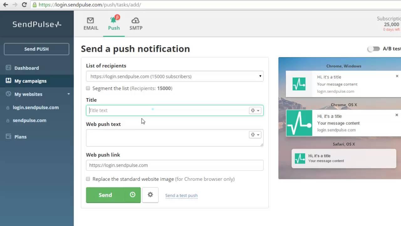 One last thing SendPulse offers is the ability to send web notifications to your users. These work on most modern browsers and work on mobile web browsers too. Integration of these push notifications is pretty straight forward. There are templates you can use for these or if you are a programmer, you can use their API (REST) to create custom push notifications.