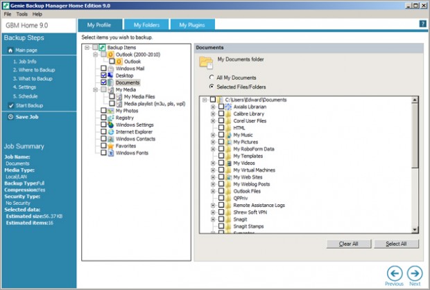 Apart from your safeguarding your files, Genie Backup Manager can also backup Windows settings, registry information or shared folders in normal format or as ZIP files. When doing so, you have the option of selecting incremental or full backups, as well as making the backup data mirror all the original files and folders.