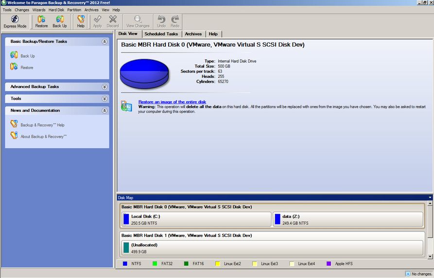 The backup utility from Paragon comes with an excellent disk management tool that really makes the process easier for novice users. The backup and restoration functions are available as simple menu options in the program, along with several other related functions such as drive copy and file extraction for retrieving specific files from a backup. The smart backup wizard guides you through the process of doing backups of specific files and folders, a full partition, media files scattered around your computer, or the mail messages stored in Microsoft Outlook. You can also set up a recurring schedule for your backups and password protect the backed up files. Paragon also lets you create bootable recovery file on an optical disk or a USB drive.
